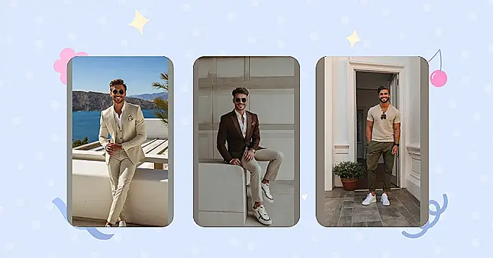 Whoa, this guy looks like he’s about to sell you a yacht…or at least offer you a really fancy lemonade. But seriously, this is a killer example of “mens summer outfits” done right. Ditching the heavy dark colors and opting for this light suit is a total pro move. Plus, rocking sneakers with a suit? Genius. It’s like he’s saying, “I’m sophisticated, but I’m also ready to run away from anyone trying to make me do homework.”