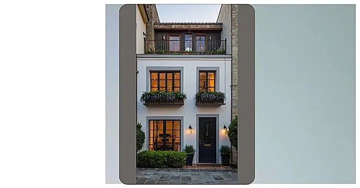 This house is seriously cool! Imagine having your own personal balcony overlooking the neighborhood – perfect for practicing your dramatic movie-star poses or just chilling out with a good book. The fancy arched windows and doors give it that “wow” factor, like something straight out of a fairytale (but way more modern!). You’d be the envy of everyone on the block – maybe even your grumpy neighbor, Mr. Henderson, who keeps complaining about your awesome new basketball hoop.