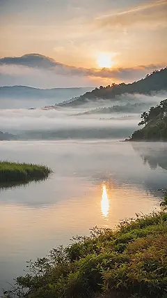 Looking at this misty morning view is like finding the mute button for your brain. Forget about that pop quiz you probably didn’t study enough for or the mountain of homework waiting. This place is so tranquil, the mist looks like it’s tucking the hills into a peaceful, foggy blanket while the sun just *gently* wakes everything up, no alarm clock needed. It’s the kind of serenity that makes even your most dramatic friend chill out for five seconds.