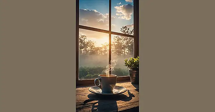 And right there, the real star of this calm morning show (besides the sunshine, obviously) is that warm drink. It’s sitting there, probably thinking, “Yeah, I’m the reason you’re not screaming into a pillow right now.” No rushing around like a headless chicken, no spilled cereal disasters (yet!), just quiet sips while the rest of the world is still deciding if it’s ready to be noisy. This picture is basically a visual guide to surviving Monday… or any chaotic day, really. It’s proof that sometimes, slowing down and just watching the light hit your coffee cup is the biggest win you can get before noon.