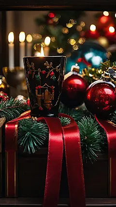 This picture is like a cozy Christmas movie scene! Imagine snuggling up by the fireplace, the scent of pine filling the air, with twinkling lights from a nearby tree reflecting off shiny red ornaments. That fancy candle, all decked out with gold and holly, is the star of the show – it’s practically screaming, “Xmas decorations are my jam!” It’s the perfect blend of festive cheer and relaxing vibes, way better than battling crowds at the mall for the latest inflatable snowman.
