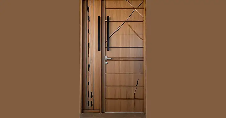This wooden main door is seriously geometry goals! It’s like someone decided to play connect-the-dots on a massive scale, but instead of getting a weird squiggly line, they got a super stylish entrance. Imagine all the compliments you’d get; people would be knocking just to admire it! And let’s be real, wouldn’t it be fun to trace all those lines while waiting for your pizza delivery?