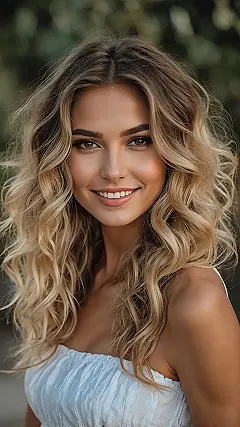 Hey, take a look at these waves! This picture is basically screaming “long hair goals” with that perfectly cute and bouncy style. It looks so easy and breezy, like you could just shake your head and have this amazing volume instantly (if only it were that simple after sleeping on it!). That mix of blonde shades and the gentle curls frame her face perfectly, giving off total sunny-day vibes and making you want to try some serious hair flipping.