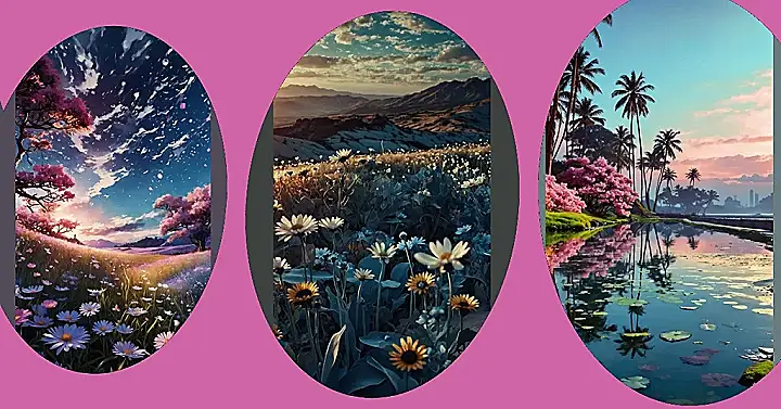 Seriously, check out those colours! The flowers are popping with gorgeous shades of pink, purple, and blue, like a painter went wild with their favourite palettes. And the sky? Don’t even get me started. It’s a mix of deep blues, fiery oranges, and a sprinkle of dreamy purples. It’s so unbelievably awesome; you’ll want to set it as your wallpaper, phone background, and maybe even print it on your bedroom wall. Just imagine falling asleep under those stars every night!