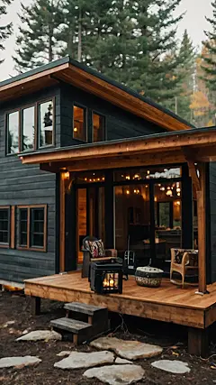Picture this: you’re snuggled up on a comfy chair on your own private deck, a little fire crackling nearby, surrounded by the whispering woods. That’s the magic of a cozy and compact barndominium – it’s like having your own personal treehouse, but way more stylish! This isn’t your grandpa’s barn; it’s got sleek dark wood, big windows to let in all the nature vibes, and enough space to be cozy without feeling cramped. Think less “rustic farmhouse” and more “modern mountain retreat.”