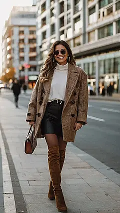 This outfit is seriously cute! It’s like the perfect blend of comfy and stylish. Imagine strolling through the park on a crisp fall day in this plaid sweater and those cozy over-the-knee boots. You’d definitely turn heads, but you’d also be super comfy. It’s the perfect combination of fashion and function, like a warm hug for your legs!