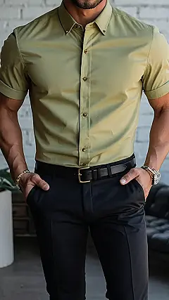 Forget the stuffy tuxedos! This olive green shirt and sleek black pants combo is the perfect way to show up at a wedding looking sharp but still totally comfortable. It’s like saying “I respect the formality, but I’m also here to have fun!” Imagine yourself, not sweating in a heavy suit, but looking stylish and ready to dance the night away – this outfit’s got your back (and your dance moves). No need to feel like a stuffed sausage in a formal outfit – just cool, calm, and collected!