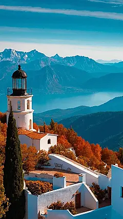But then you see it – a tall, white lighthouse standing proudly on the hilltop, like a watchful guardian of the sea. It’s a little bit mysterious and a little bit magical, and it makes you wonder what secrets it holds. Maybe it’s a place where sailors find refuge, or maybe it’s a place where dreams come true. Whatever it is, it’s a place that’s full of beauty and wonder, just like this amazing picture.