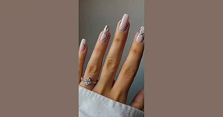 The image shows a hand with some seriously stylish gel nails. Imagine all the compliments you’d get, just for having such awesome nails! Those are the kinds of nails that would make you feel like you could take on the world!