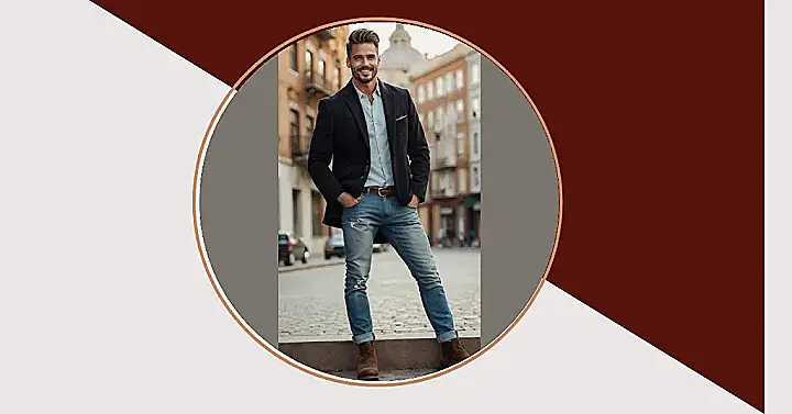 So, check out this look! You see a fancy blazer trying its best to look important, chilling with some ripped jeans that clearly just rolled out of bed. This is part of the fun of ‘americana fashion’ for guys sometimes – taking classic American vibes like durable denim and then messing it up just enough by adding something totally different, like a sharp jacket. It’s like telling your clothes, “Be cool, but also, don’t take yourselves *too* seriously.” It’s a pretty smooth way to look put-together without actually being fully put-together, which is basically a superpower.