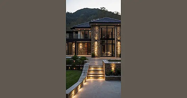 Seriously, imagining the planning that went into making a house look this sharp is kind of wild. They probably had to figure out where every single light goes so it glows just right at dusk, making the stone walls and wood accents pop like they’re on a red carpet. It makes you wonder if living there comes with a requirement to always keep your rooms tidy because *everyone* can see in. It’s proof that designing buildings isn’t just about making boxes to live in; it’s about making them look like they belong on a magazine cover, possibly with a secret passage somewhere (we can dream, right?).