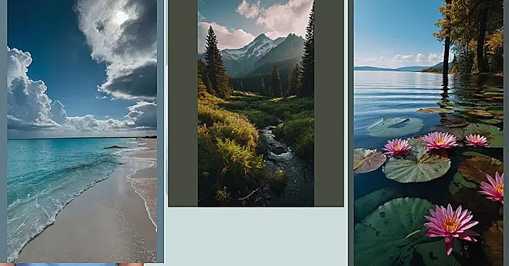 Wow, check out this picture! It’s like a postcard from a super peaceful place. You’ve got these gorgeous pink water lilies just chilling on their lily pads, looking like they’re posing for a magazine cover. The water is so still and reflective, it’s almost like a mirror showing off the pretty landscape and the sky beyond. It’s the kind of view that makes you want to grab your camera and start taking “pretty landscapes photography” pictures of your own!