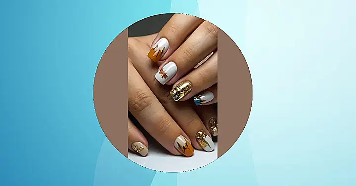 These nails are giving me major autumn vibes! üçÅ With their cute little leaves and a touch of gold glitter, they’re the perfect way to celebrate the changing seasons. It’s like a mini fall festival on your fingertips! Just imagine showing off these beauties at a pumpkin patch or apple orchard ‚Äì you’d be the envy of all the scarecrows!