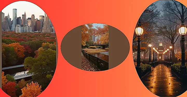 Imagine strolling down a misty path in Central Park on a crisp autumn evening. The air is cool and a little damp, like a warm hug. The leaves have turned into vibrant reds and oranges, falling gently around you like confetti. The streetlamps cast a warm, inviting glow over the path, making everything look magical. It’s as if the city itself has been transformed into a fairytale setting, complete with old-fashioned lampposts and a hint of mystery.