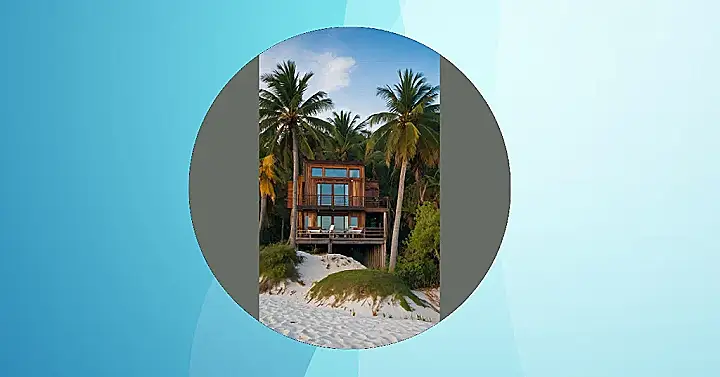 This beach house is a total dream! It’s perched high above the sand on sturdy stilts, like it’s afraid to get its toes wet. Imagine waking up in that cool, breezy house and being able to step right out onto the beach! You could spend all day building sandcastles, splashing in the waves, or even taking a nap under a palm tree.