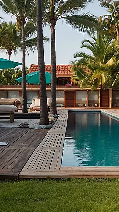 Imagine this: You’re sprawled out on a comfy lounge chair, soaking up the sun, with a refreshing breeze rustling through the palm trees. You glance over at the sparkling pool, the perfect shade of turquoise, tempting you to take a dip. The only sound is the gentle lapping of water and the occasional giggle from a group of friends enjoying a refreshing drink. This is the ultimate beach house dream – no homework, no chores, just pure relaxation.