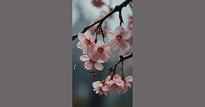This picture is like a super-cute invitation to a cherry blossom party! Imagine yourself surrounded by delicate pink flowers, each one tiny and perfect. It’s like those pretty sakura flowers you see in Japanese cartoons, only this time, they’re ready to become your awesome wallpaper. Just picture your phone or computer screen exploding with these cheerful blooms – instant spring vibes, even if it’s snowing outside!