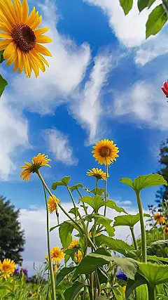 Imagine being one of those sunflowers, feeling the sunshine on your face and the breeze in your leaves. You’d be so happy you’d want to reach up and touch the clouds too! The whole scene is like a happy reminder to enjoy the beautiful days and let your spirit soar like the sunflowers. It’s a perfect picture for a sunny morning wallpaper, don’t you think?