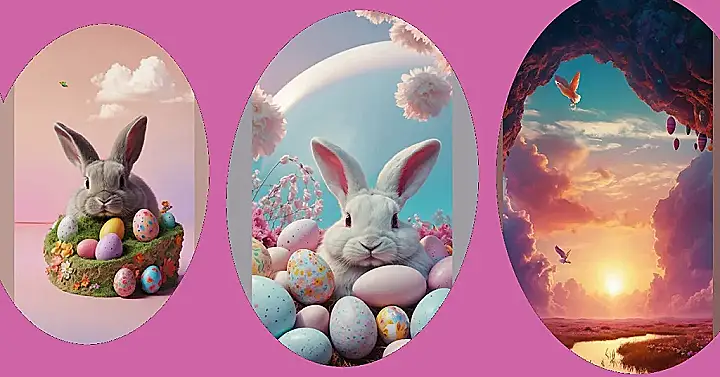 This bunny looks like it’s straight out of a pastel dream! All those perfectly painted eggs and the soft, fluffy fur are giving us major aesthetic goals. I bet this little guy is thinking, “Yeah, I woke up like this.” You could totally use this as a wallpaper and make everyone jealous of your Easter spirit.
