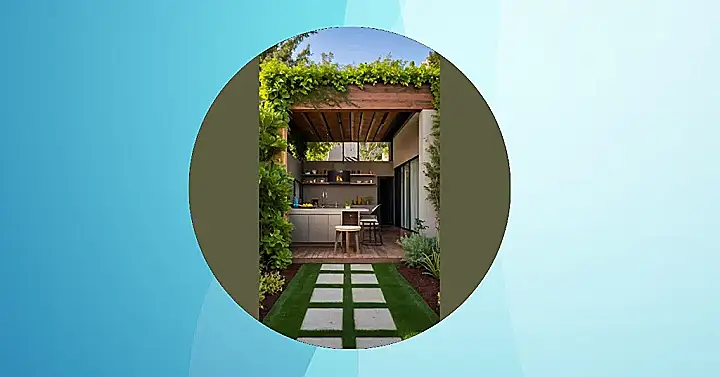 Seriously, this backyard is like the Swiss Army knife of outdoor spaces – compact and loaded with features! Forget boring grass to mow; this place has style, with a walkway that looks like it’s straight out of a movie. Plus, with an outdoor kitchen like that, you’ll be whipping up gourmet snacks while everyone else is still stuck inside doing homework. It’s basically the ultimate teenage hangout zone, perfectly sized for maximum chill.