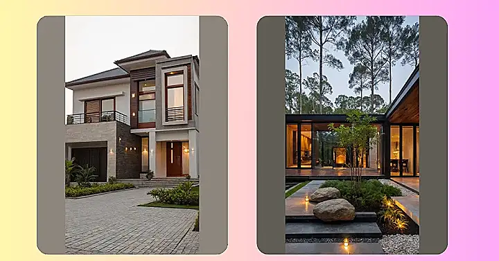 Checking out a house like the one in this photo is basically like scrolling through the ultimate ‘future goals’ list, except way more exciting than clean socks. Seriously, look at those giant windows and the fancy balcony! You could totally host the most epic movie nights ever with that view, or maybe use the balcony for important dramatic entrances (or just escaping your chores). It’s the kind of place that makes you think, “Yep, definitely adding this style to my personal ‘No Chores Allowed’ dream house plans.” Imagine having the perfect spot for your gaming setup right by those big sliding doors – sunshine and screen time, the ultimate combo!