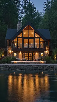 Seriously, this house is giving major “escape to the mountains and forget your worries” vibes. The dark wood and the warm light peeking through the windows create such a welcoming atmosphere. You can almost picture yourself sipping hot cocoa on the deck, watching the sunset reflect beautifully on the still waters of the lake, totally relaxed and rejuvenated. It’s the kind of place where even your homework seems a little less daunting!