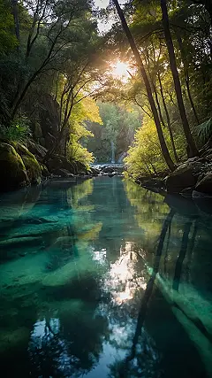 This picture is totally giving off “I need to be here right now” vibes. Imagine ditching your phone (after posting this, obviously) and just chilling by that water. It’s so clear you can probably see all the fish plotting world domination or something. And that sunlight peeking through the trees? Total aesthetic goals. Time to trade in those homework blues for some calming greens and blues!