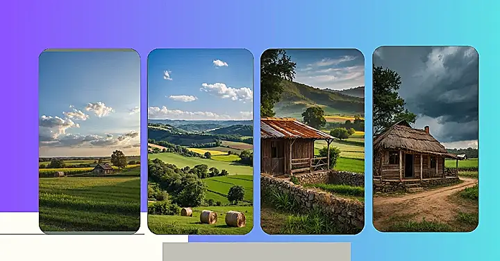 Taking photos in places like this is way more fun than trying to get a decent selfie in a crowded mall. You might get tangled in some tall grass (part of the adventure!), or have to dodge a friendly bee checking out the blue flowers in the foreground (they’re basically posing for the camera, right?). It’s all about capturing the quiet cool of the countryside, from the big sky to the tiny details. So next time you see a scene like this, grab a camera – even your phone works – and give rural photography a shot. Just try not to step on the art (the flowers!).