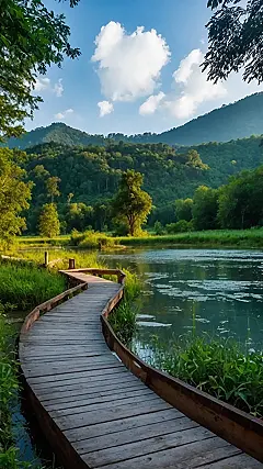Check out those perfectly green trees and the misty hills hanging out in the background – they look like they posed just for this shot! Seriously, if this was my backyard, I’d be outside taking pictures all the time, probably tripping on the boardwalk trying to get the perfect angle. This kind of beautiful nature landscape photography reminds you that the world outside our phones is pretty spectacular, even if it doesn’t have Wi-Fi.