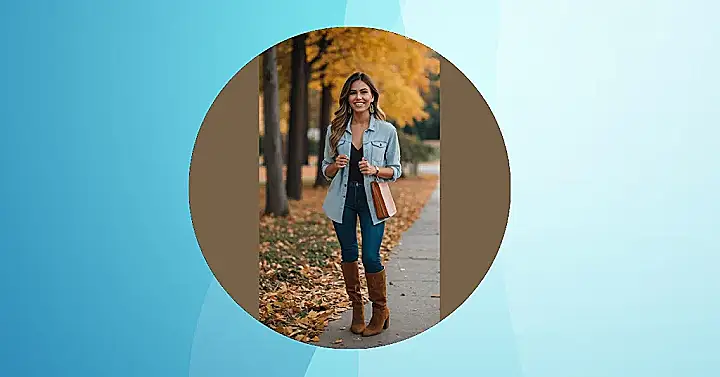 This outfit is perfect for a casual dinner date when the weather starts to get chilly. It’s comfy but still stylish, so you can feel good about yourself while you enjoy a delicious meal. The denim jacket gives a classic vibe, and the boots add a touch of sophistication. The brown bag and earrings add a little extra flair. Just imagine yourself walking through those autumn leaves, feeling confident and looking fabulous!