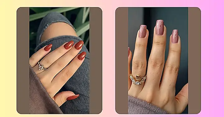 These nails are the perfect blend of simple and stylish! The soft, dusty rose color is so pretty and autumnal, and the tiny gold flecks add a touch of sparkle without being too over-the-top. Imagine how amazing these would look against a cozy sweater! They’re like a mini-fall festival on your fingertips – sweet, simple, and ready to make a statement!