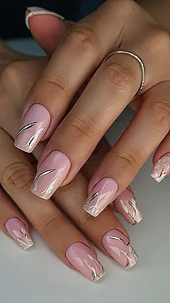Okay, so check out these nails! They’re totally rocking that light pink color, perfect for April, and those silver and gold accents are, like, next-level. Can you even imagine trying to paint that tiny feather design? It‚Äôs probably some nail artist wizardry, but definitely makes these April gel nails worthy of a serious selfie sesh.