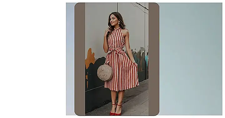 And can we talk about that bag? It looks like she’s carrying a little straw sun with her, ready to soak up all the good vibes. Plus, those red shoes add such a pop of color! Basically, this whole outfit screams fun, flirty, and ready to take on the world. Time to find my own striped dress and rock it!