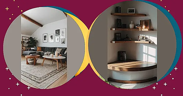The picture shows a corner shelf unit, a perfect example of how less can be more. With just a few carefully chosen pieces, like a couple of books, a vase, and a few framed photos, the space is transformed into a cozy and inviting nook. This set-up has a definite “less is more” vibe, which makes it perfect for people who love the clean and airy aesthetic of minimal home decor.