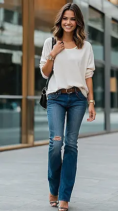 Imagine rocking this outfit to a casual lunch with friends, a stroll through the park, or even a coffee date. It’s versatile enough for anything, but still looks super put-together. The key is the relaxed fit of the jeans – not too tight, not too baggy; just the right amount of casual cool. It’s comfy, stylish, and honestly, makes you look like you just stepped out of a fashion magazine without even trying too hard.