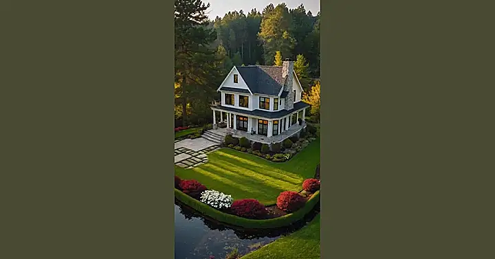 And speaking of welcoming, the house has a super-sized lawn that looks like a giant green carpet, with a tiny pond in front. The pond looks like a secret hideaway for fairies and other magical creatures. It’s a total fairytale setting, right down to the neatly trimmed bushes that look like they’re ready to have a tea party with the house itself. This house isn’t just beautiful, it’s practically begging you to come and play!
