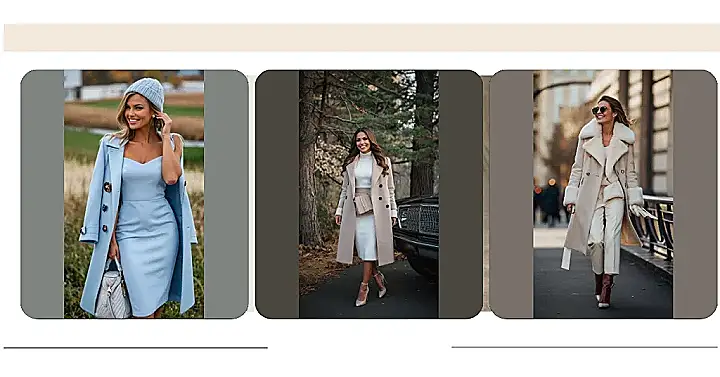 This outfit is seriously chic – like, if a princess went undercover as a super-spy, this is what she’d wear. Imagine strolling through a snowy park, all bundled up but still looking like you just stepped out of a fashion magazine. That beige coat? It’s like a cozy hug that’s also totally stylish. The white dress and those adorable heels? They are the perfect finishing touch for a look that says, “I’m sophisticated, but I also appreciate a good snowball fight.”