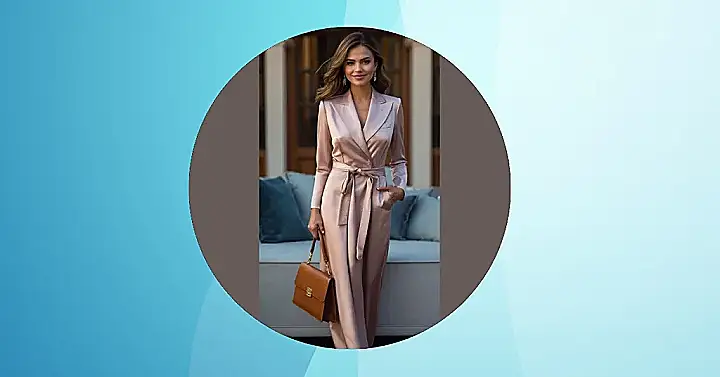 So, you’re heading to a spring dinner and want to look classy? This outfit screams “sophisticated, but also comfy enough to eat all the dessert!” The pale pink color is perfect for spring, and the silky material looks super fancy without being too over the top. Plus, the tie-waist detail is a total win – it cinches you in all the right places while still letting you breathe, which is crucial when there’s cake involved.