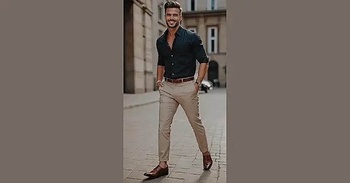 The guy in the photo is basically showing off what men’s cocktail attire is all about. See that dark shirt and the crisp, light pants? It’s like finding the perfect level between “I just rolled out of bed” and “I’m trying way too hard.” This look says you know how to clean up without feeling like you’re trapped in a stiff suit. It’s comfortable enough to actually move around and grab a snack, but sharp enough that nobody will confuse you with someone who just came from mowing the lawn. It’s the ultimate easy-going cool for a slightly fancy party.