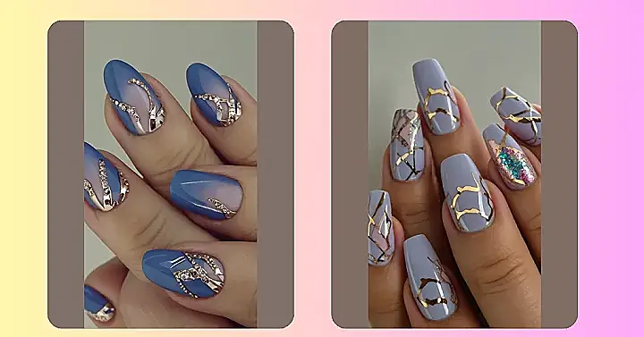 These nails are totally giving us “February feels”—like a frosty winter morning that’s secretly excited for spring! Imagine: you’re bundled up in a cozy sweater, sipping hot cocoa, but there’s a little sparkly sunshine peeking through the clouds. That’s exactly what these lilac-and-gold beauties represent. The delicate gold cracks look like sunshine breaking through the ice, and they’re way cooler than actual cracked ice (which, let’s be honest, can be a bit painful). Plus, they’re way less likely to give you a brain freeze.