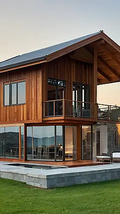 Okay, let’s be real, this house is like the chill older sibling of all the other houses on the block. It’s got that awesome wood finish that’s super stylish but not trying too hard, and those massive windows practically beg for you to have a dance party inside. Plus, it’s got that sweet mini-pool right by the house where you can dip your feet in!