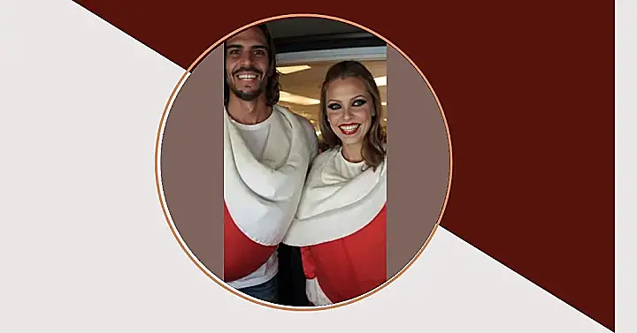 This couple clearly knows how to make a statement with their costumes. It’s funny, it’s festive, and it’s sure to make people chuckle. After all, who doesn’t love a little bit of silly fun during Halloween? Maybe next year they’ll go for a gingerbread man and woman! With their creativity and playful spirit, they’re sure to have a blast!