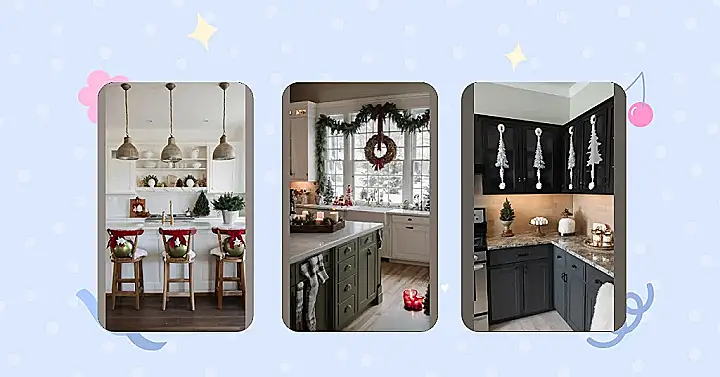 Let’s kick things off with some creative cabinet ideas! You can easily add a dash of festive spirit by hanging stockings from your cabinet handles or wreaths on your doors. It doesn’t take much to transform your kitchen into a charming winter wonderland with just a few carefully chosen decorations. You guessed it—cute pieces are the secret ingredient to cozy vibes!