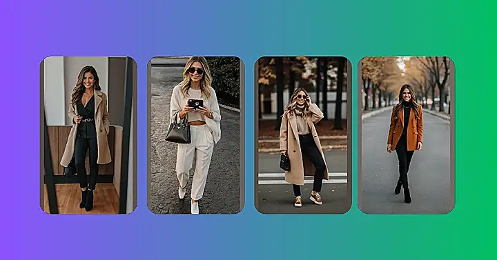 This outfit is giving us major “fall feels” – cozy, comfy, and ready for everything from pumpkin spice lattes to apple picking! The camel coat is classic, but it’s the little details that make this look pop. The black jeans are chic and trendy, and the brown sneakers add a sporty touch. The whole outfit screams “I’m ready for fall, but I’m still stylish!”