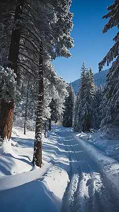 This picture looks like a scene straight out of a fairytale! The trees are all covered in snow, making them look like giant white marshmallows. The snow-covered path looks so inviting, like it’s calling out to you for an adventure. Just imagine walking along that path, crunching through the fresh powder, with the sun on your face and the crisp winter air filling your lungs. It’s the perfect picture for a winter day, reminding you of all the beauty and fun that winter can bring.