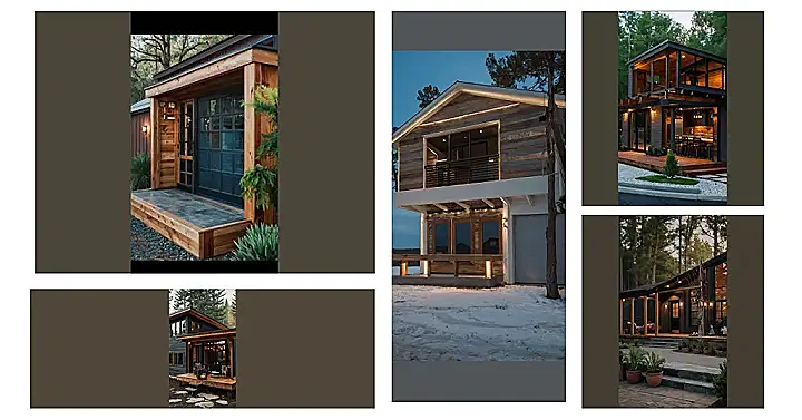Imagine a cozy cabin, but smaller and way cooler! That’s what a barndominium is all about. This picture shows a super cute, compact version – perfect for someone who wants a comfy space without a ton of cleaning. Think of it as a stylish treehouse for grown-ups, but with better internet! It’s all wood and modern charm, ready for you to fill it with plants, comfy chairs, and maybe even a miniature bar (hence the “barndo” part!).