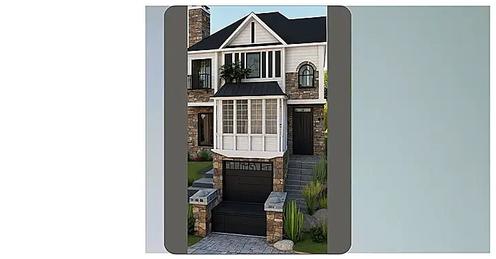 This stunning Bloxburg house is perfect for beating those winter blues! Imagine cozy nights in by the fireplace (which we can totally picture, even if it’s not shown!), sipping hot cocoa while snowflakes gently fall outside. The gorgeous stonework and dark accents give it a sophisticated vibe, but the big windows and sunroom promise plenty of light to brighten up even the shortest winter days. It’s the ultimate blend of stylish and comfy—just like a perfectly snuggly winter sweater!