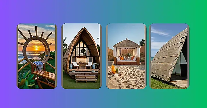 Forget fancy hotels, this simple cabana design proves that less is more. It’s a total win-win: super easy to build (or at least, imagine building!), super stylish, and super relaxing. Plus, those little boxes look like they might contain delicious snacks – the perfect accessory for your seaside retreat. You could even add some fairy lights for extra magic! It’s simple, breezy and totally Instagrammable.