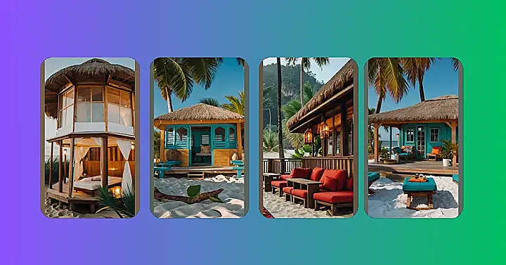 This beach cabana is like a mini-vacation in itself! Just imagine sinking into that comfy-looking couch, feeling the cool breeze through the windows, and hearing the gentle sound of waves crashing on the shore. It’s the perfect place to relax, sip on a fruity drink, and soak up the sun (without getting too hot!).