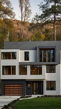 And picture this: You’re chilling in your super modern suburban house, the sun’s setting, painting the hillside behind you in all sorts of fiery colours. You’re looking out from one of those massive windows, sipping hot cocoa, maybe even wearing a ridiculously comfy onesie. It’s a mix of nature and awesome architecture, making it the perfect place for a movie night in or a party with friends – whoever you want to impress! Seriously, this is the kind of house that makes you feel like you’re living in the future… but with reliable Wi-Fi.